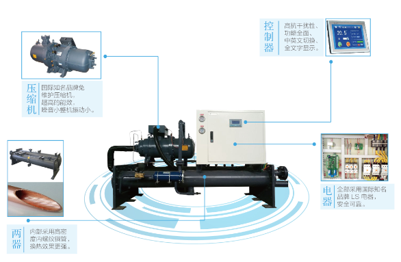 MG-WB系列水冷螺桿式冷水機(jī)可用于注塑、擠出、電鍍、模具、皮革、印刷、液壓、化工、型材氧化、反應(yīng)斧、化纖、真空鍍膜、造紙紡織、中央空調(diào)等方面制冷及各種冰水集中供水。